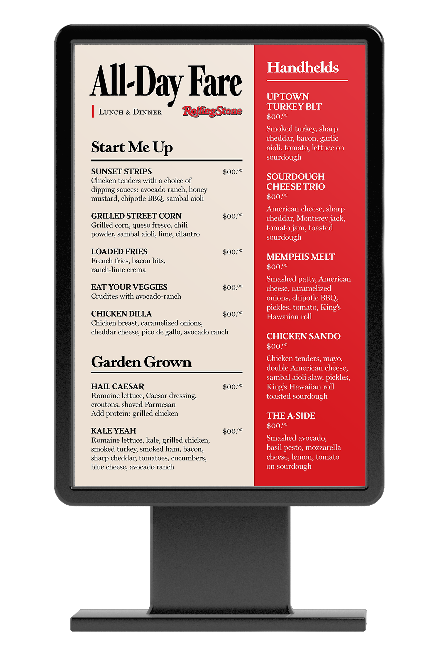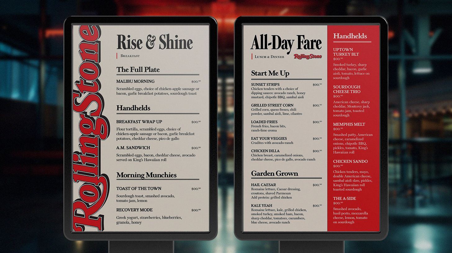 LAX Restaurant Menu Design, Digital Menu Boards & Wall Mural